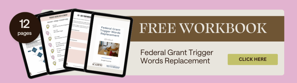 It’s more of finding synonyms to switch out the approach to language without changing the end result or impact. If you want to jump to quickly using synonyms to replace banned words, download our free 2025 Federal Grant Trigger Word Replacement Checklist.